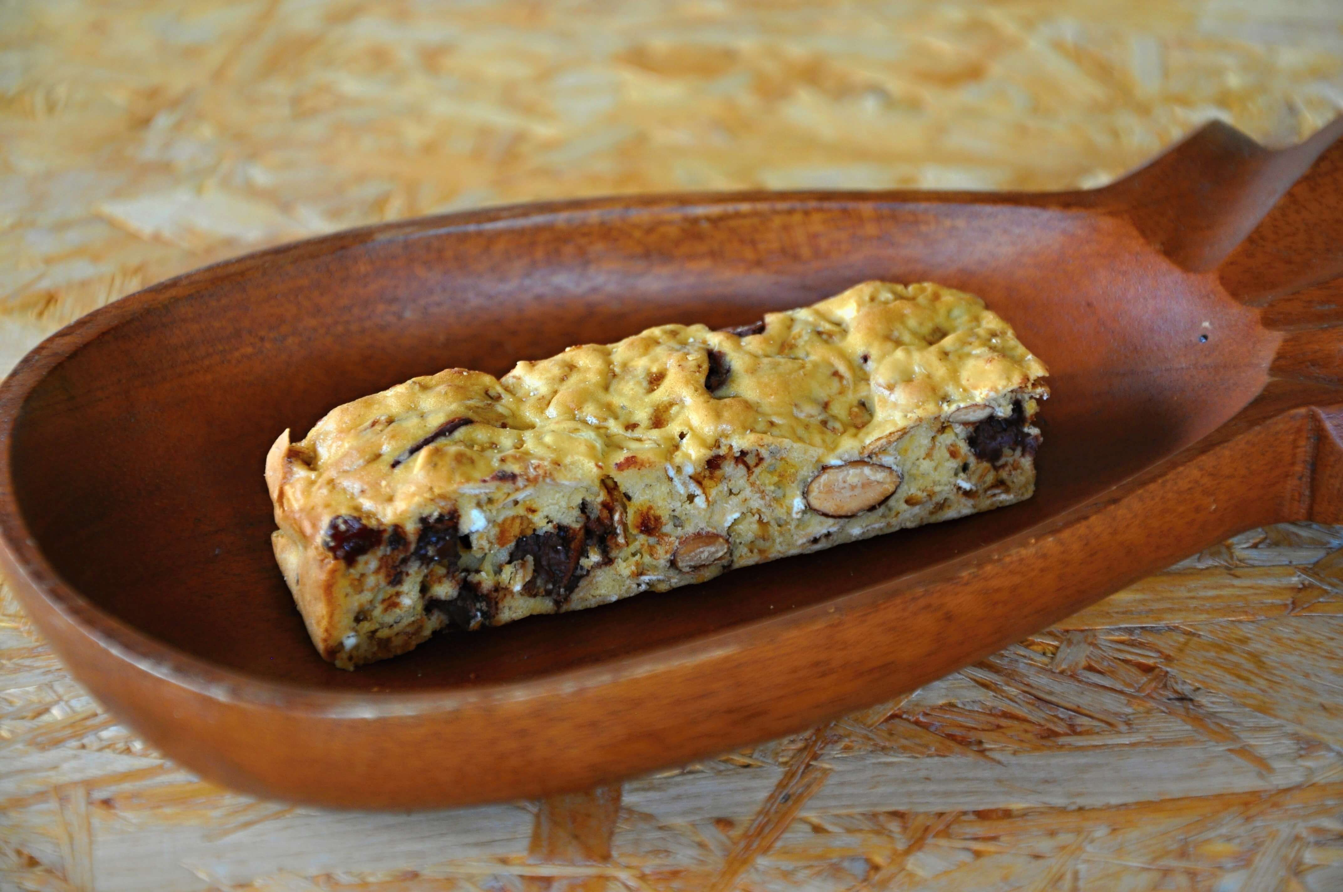 シンプルにナッツやドライフルーツなどと一緒にはちみつを混ぜてオーブンで焼き上げ、食べやすくバーにしました。